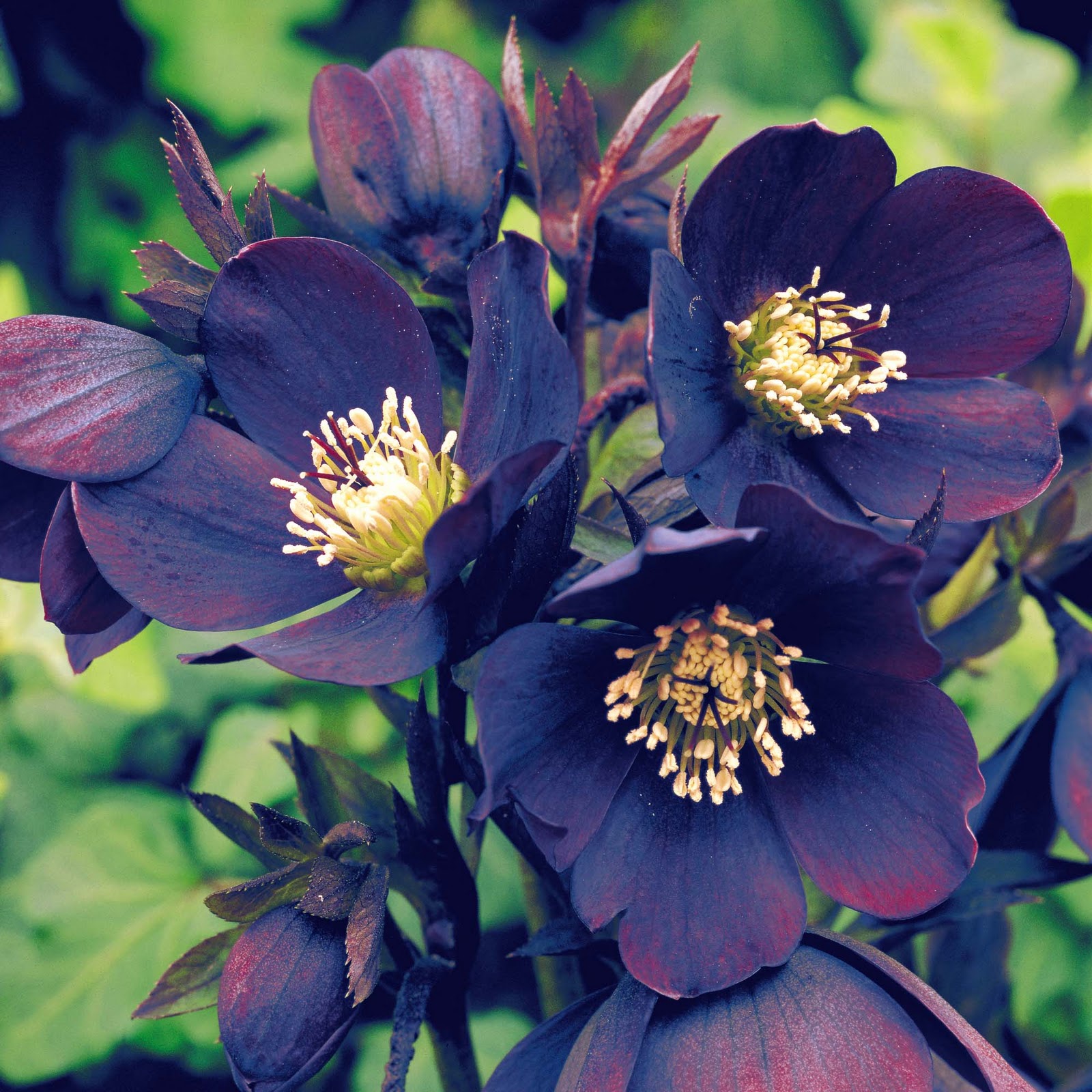 Ciemiernik ogrodowy Hellegorus x hybridus, który ma wiele ciekawych odmian np. ‘Pluto’ (ciemnoczerwone liście z niebieskawym połyskiem),